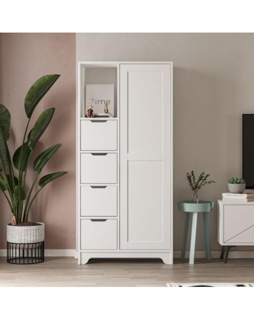 Occhiata veloce Aggiungi lista dei desideri Armadio multiuso con 4... 225,00 € Armadio multiuso con 4 cassetti vano a giorno e anta Yada Midi colore bianco 77x29,6x164,5