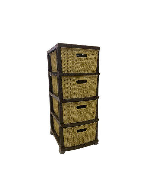 Cassettiera 4 cassetti effetto rattan Orgu crema e marrone