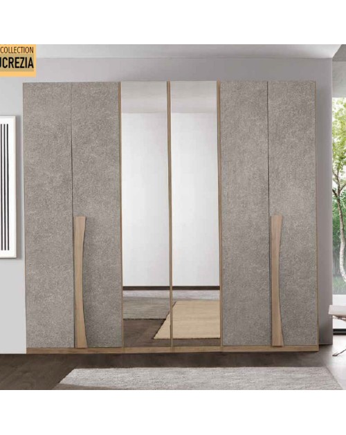 Armadio 6 ante con specchi noce granito Lucrezia