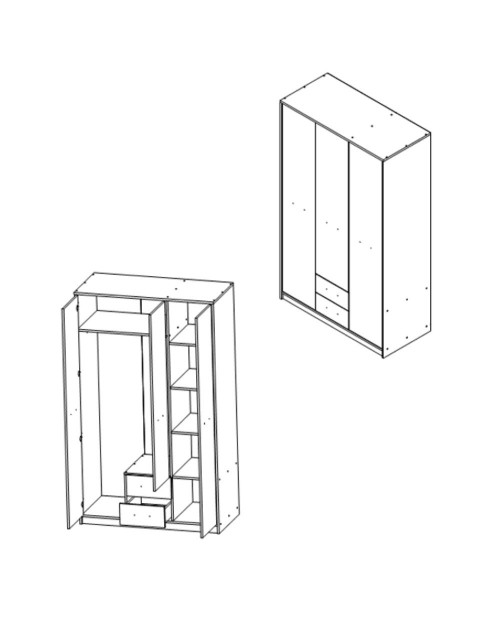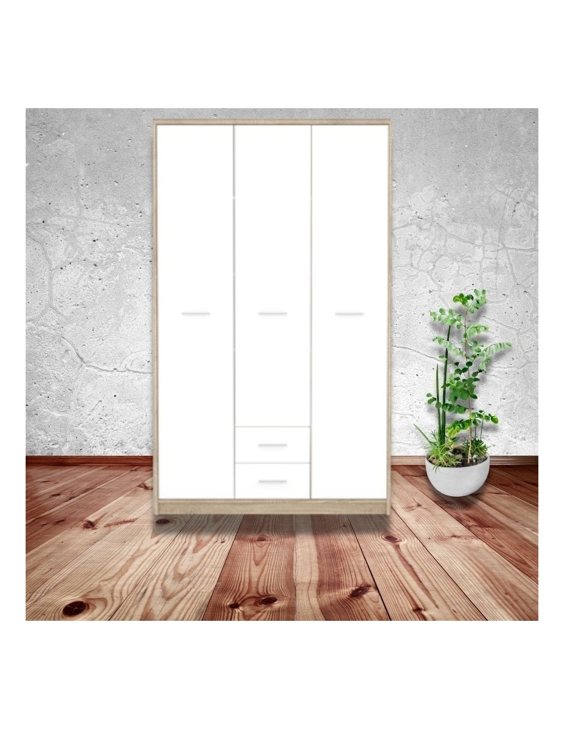 Armadio 3 ante 2 cassetti rovere sonoma bianco Nepo