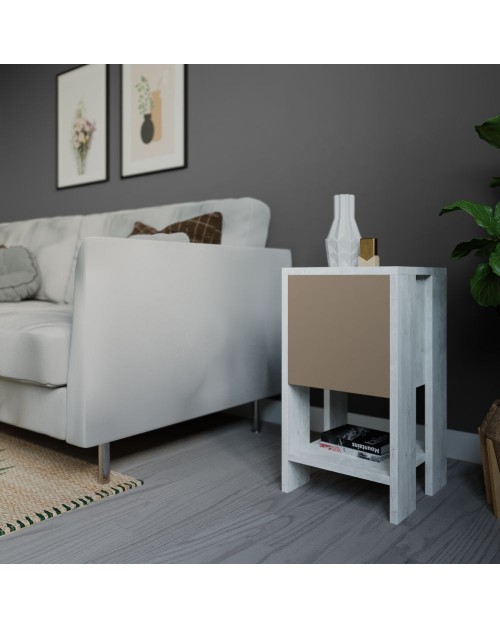 Comodino Ema bianco tortora anta ribalta 30x30x55h