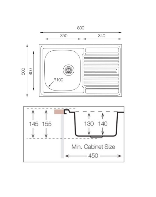 Lavello appoggio acciaio inox 80x50 cm una vasca e gocciolatoio destro SA216