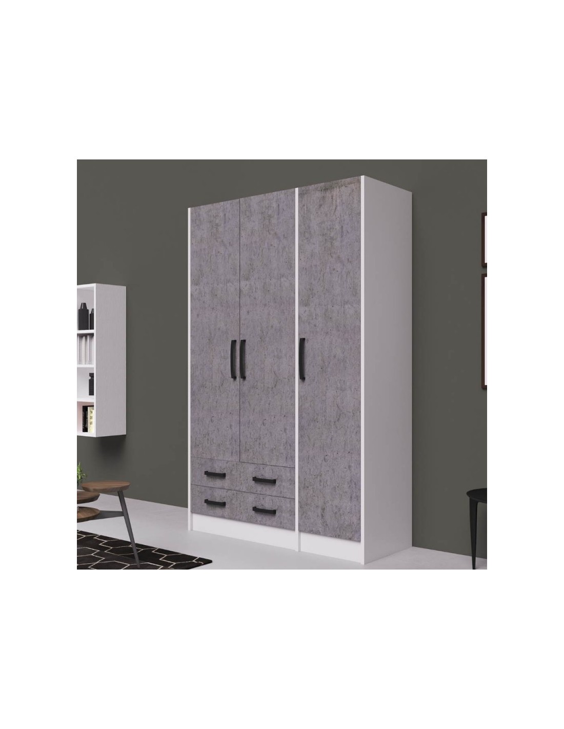 Armadio cemento tre ante e due cassetti 135x52x210h