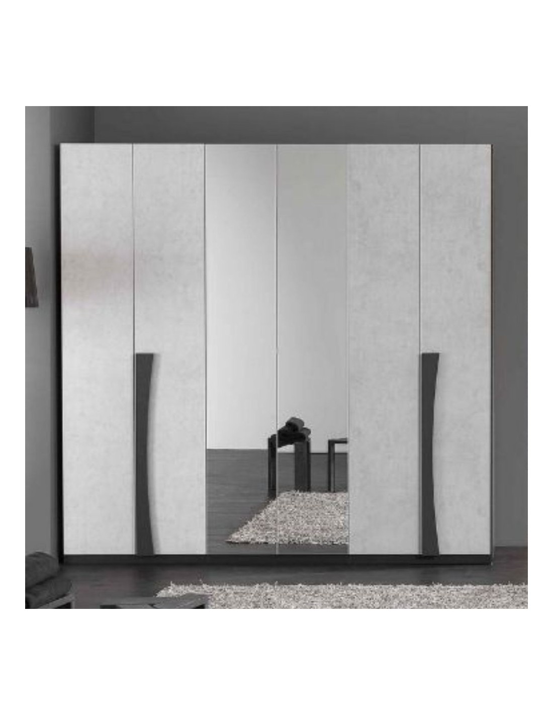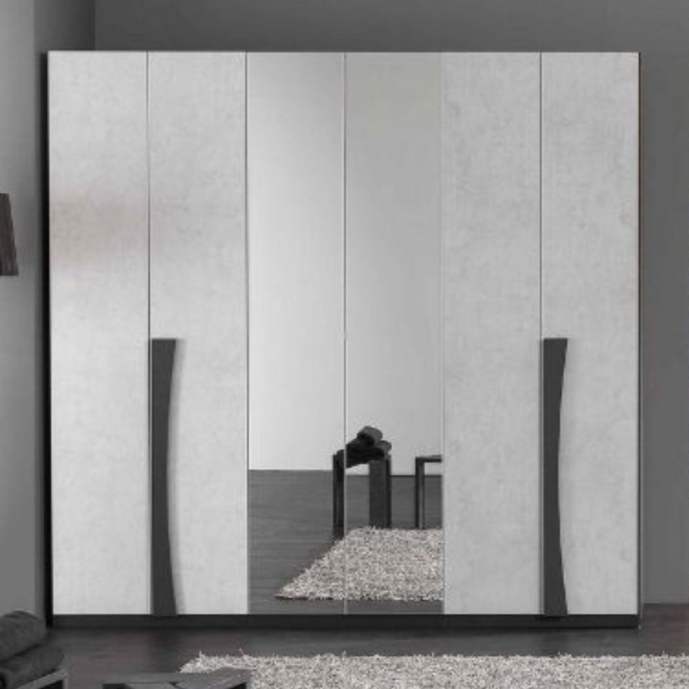 Armadio 6 ante con specchi grigio spatolato cemento Lucrezia