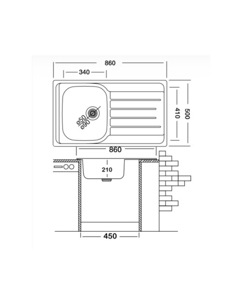 Lavello incasso cucina acciaio 86x50 cm una vasca e gocciolatoio sinistro EX320K