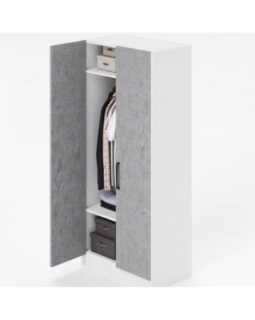Semplice e utile armadio dotato di due ante. Ideale per stivare vestiti e maglie. L'interno presenta una barra porta abiti e due ripiani.