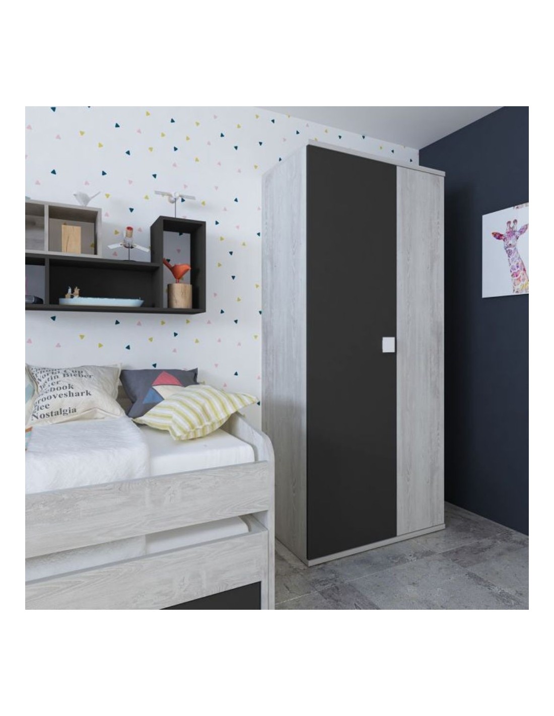 L'armadio 2 ante bianco consumato antracite è il prodotto ideale per avere tutto in ordine in cameretta. Le generose dimensioni offrono una grande capacità contenitiva, e potrai riporre facilmente i tuoi vestiti grazie ai due ripiani e alla barra appendiabiti.