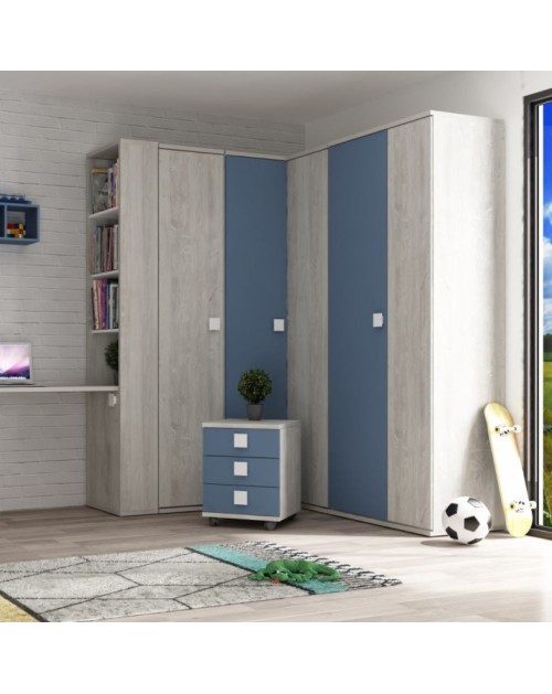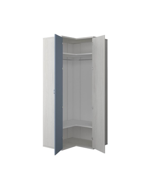 L'armadio angolare bianco consumato e celeste è la giusta soluzione per arredare la tua cameretta. Grazie alle sue generose dimensioni potrai avere tutto in ordine.