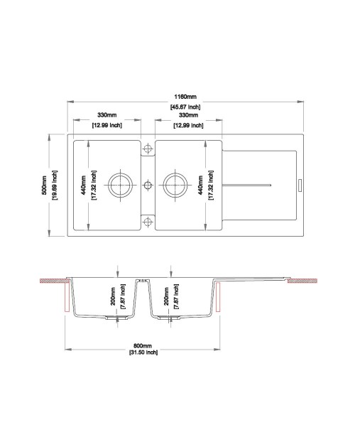 Lavello 2 vasche e gocciolatoio nero Enigma D200