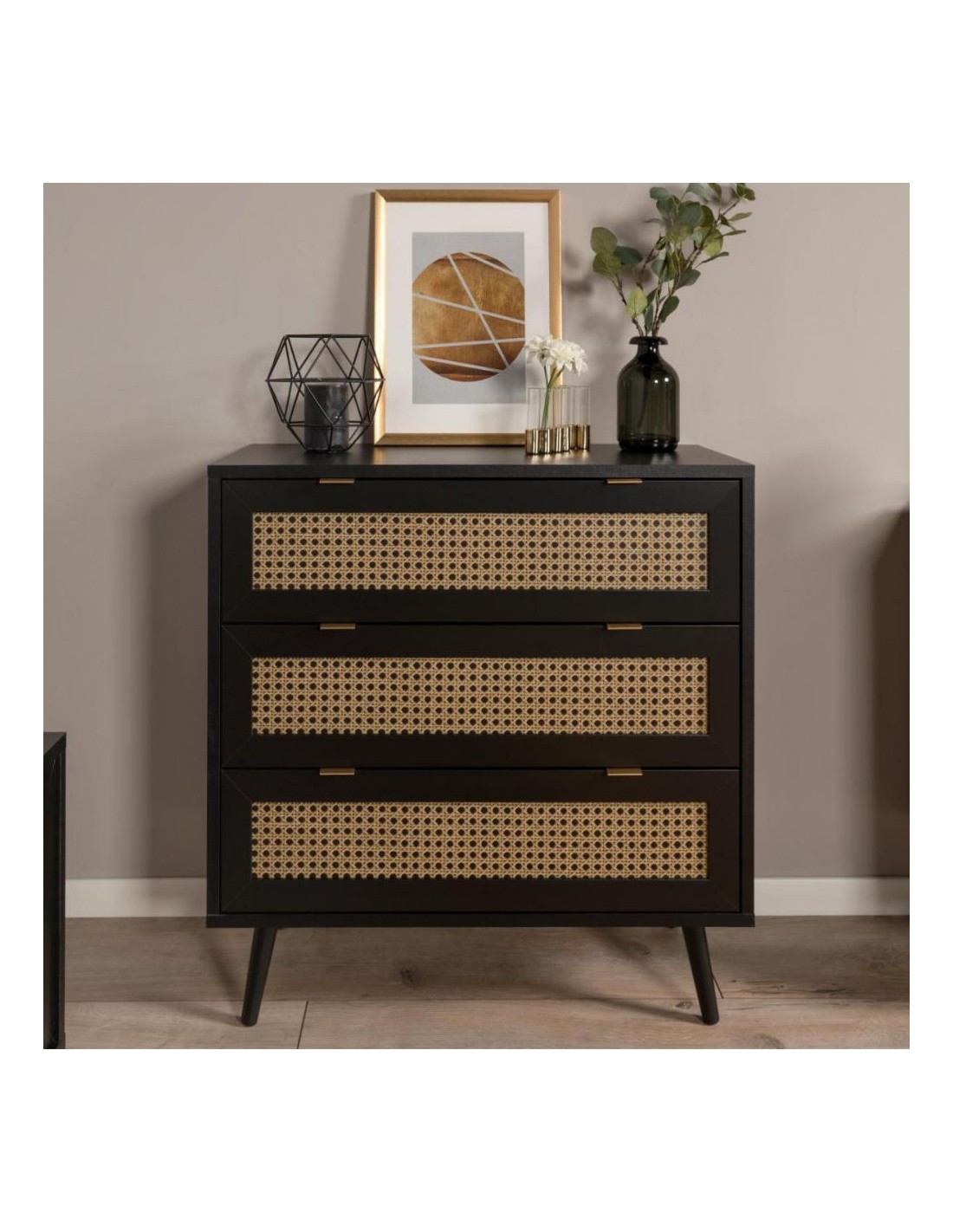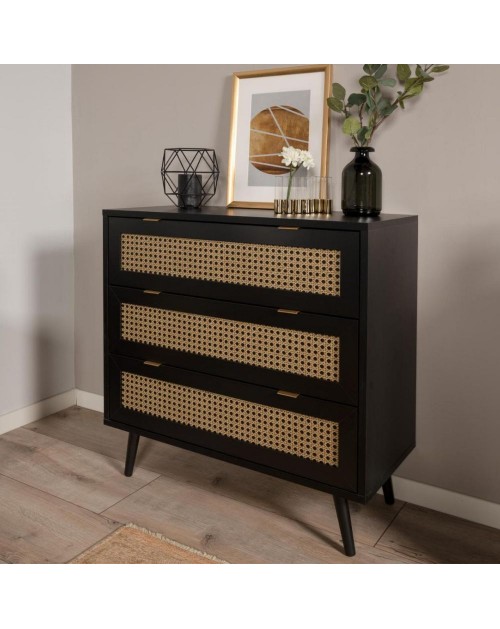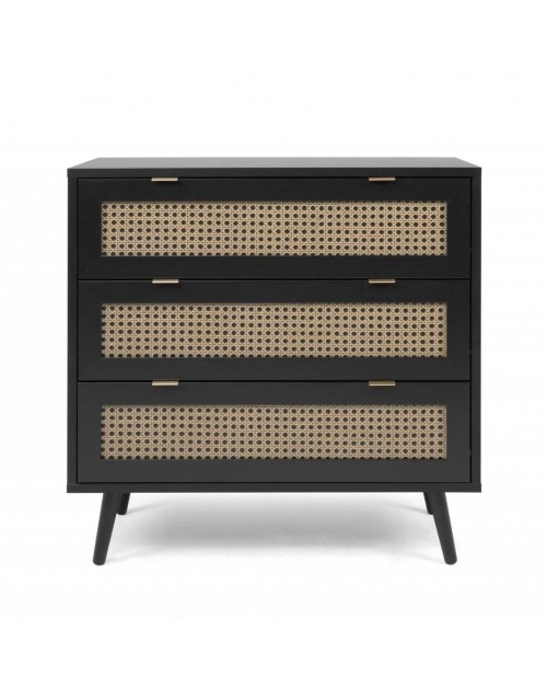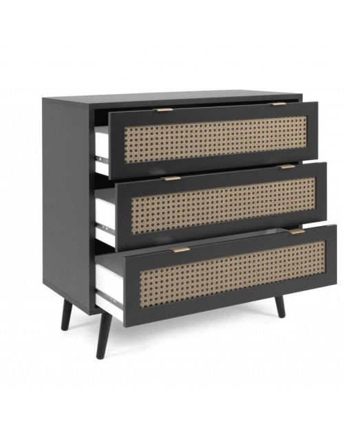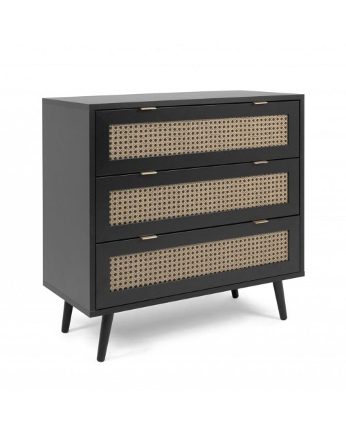 Cassettiera 3 cassetti nera con frontali vimini Vienna03A