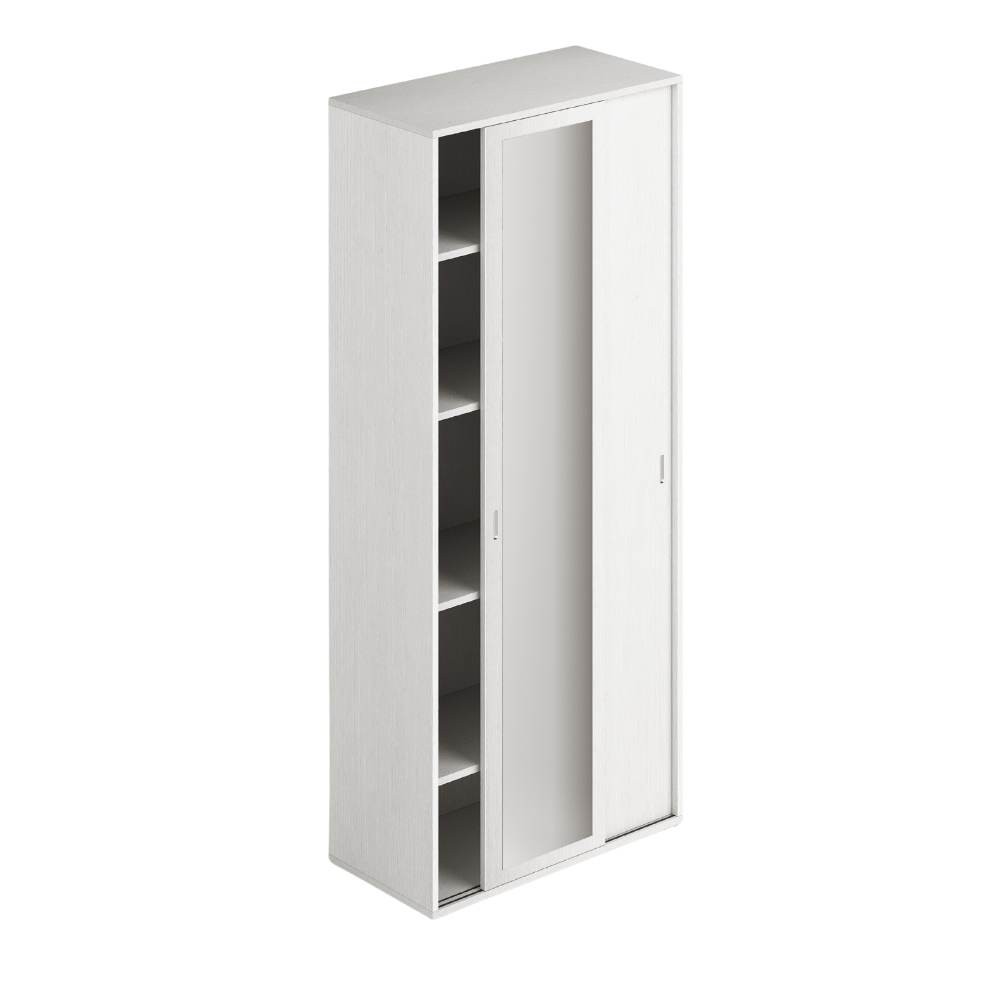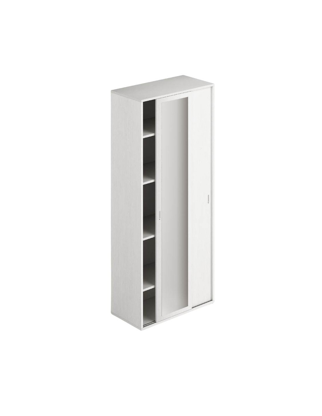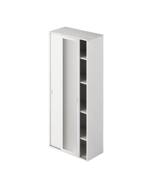 Armadio bianco frassinato due ante scorrevoli 90x43x212h con ripiani e specchio