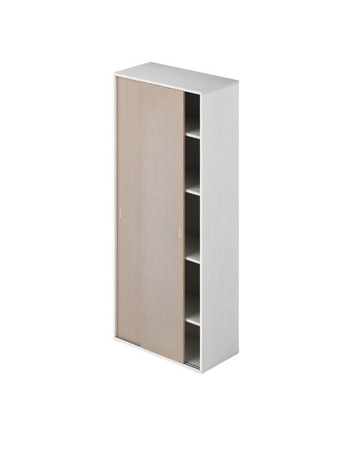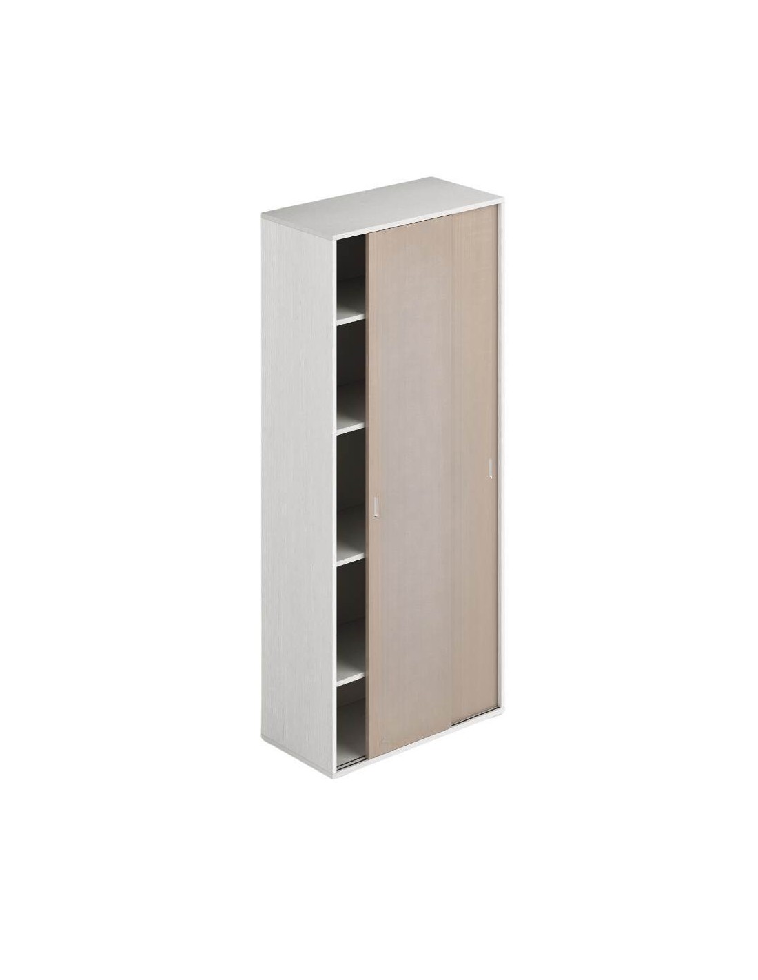 Armadio bianco frassinato e olmo due ante scorrevoli 90x43x212h con ripiani