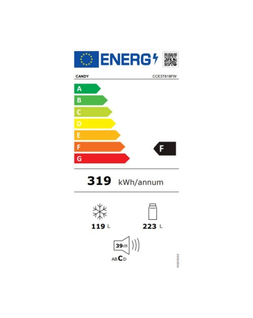Secondo la New Energy Label, questo frigorifero appartiene alla classe F. Rispetto agli elettrodomestici di classe G, riduce i consumi fino al 20%, risparmiando energia, denaro e rispettando l'ambiente.