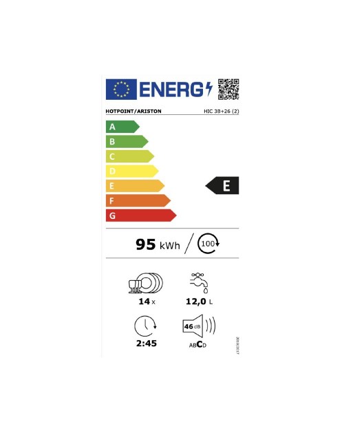 Lavastoviglie incasso totale Hotpoint Ariston HIC3B+26 14 coperti classe E
