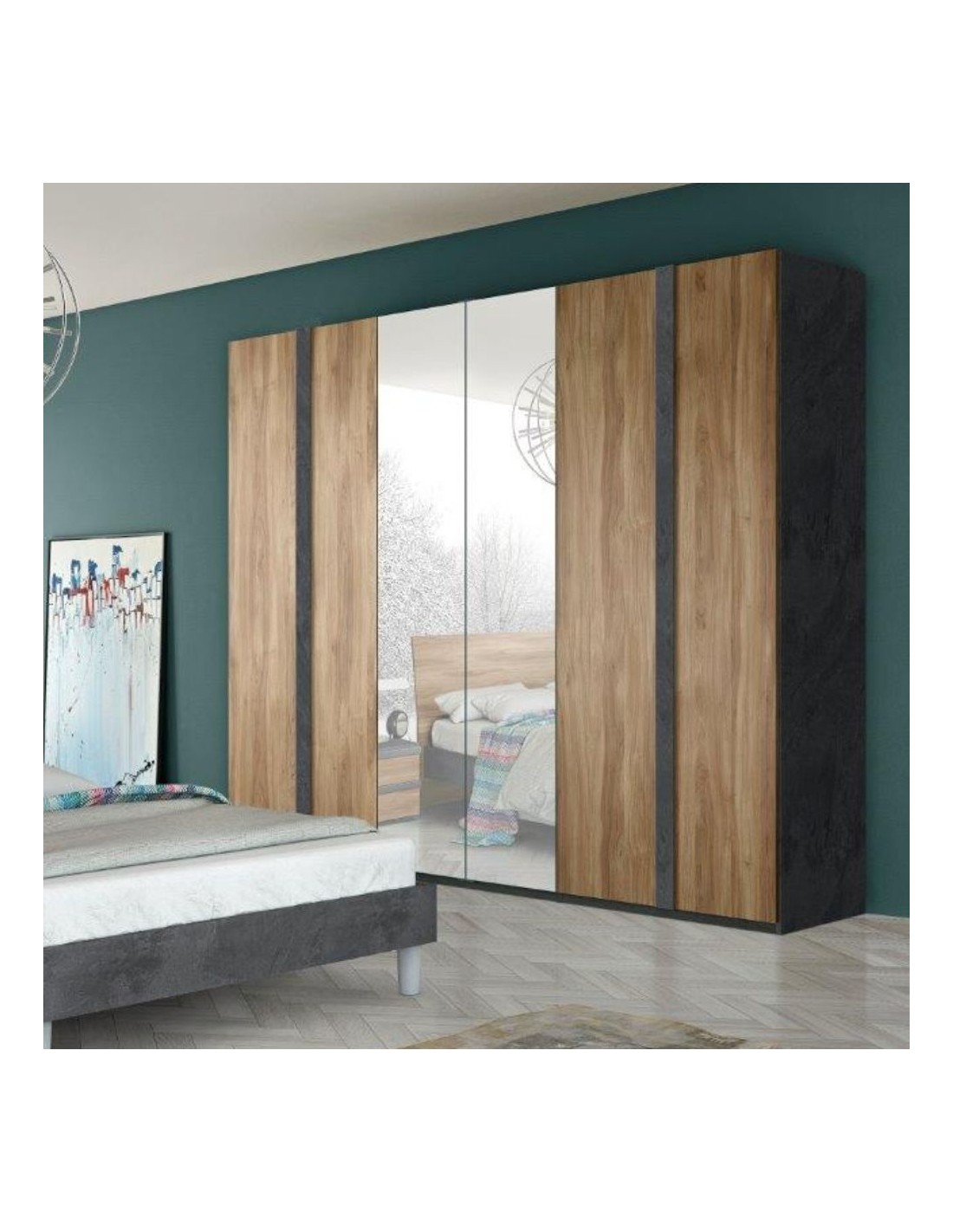 Armadio 6 ante noce con ante centrali a specchio noce dark Borghese