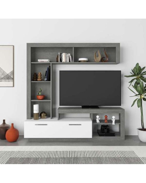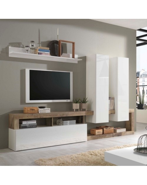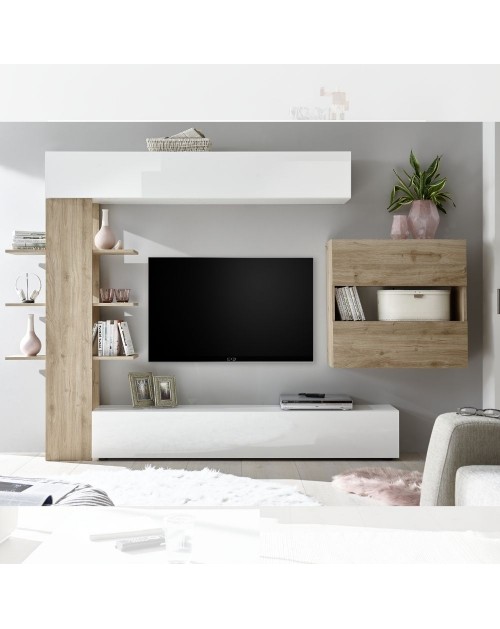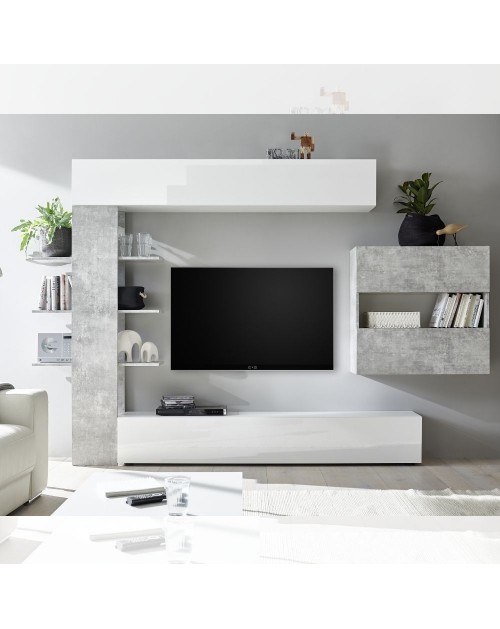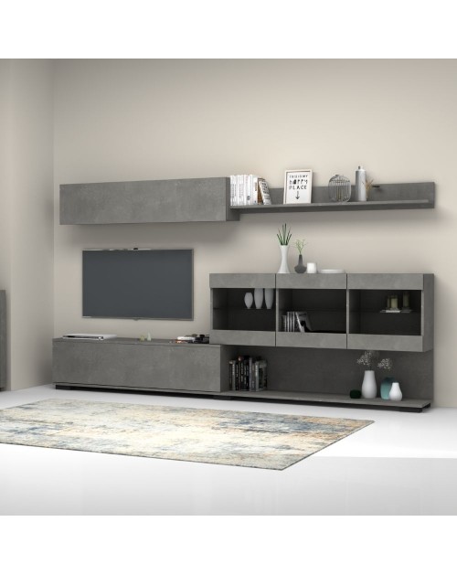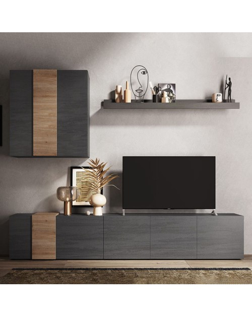 Parete attrezzata 301x44x195h titanio rovere Kadiz Sabry