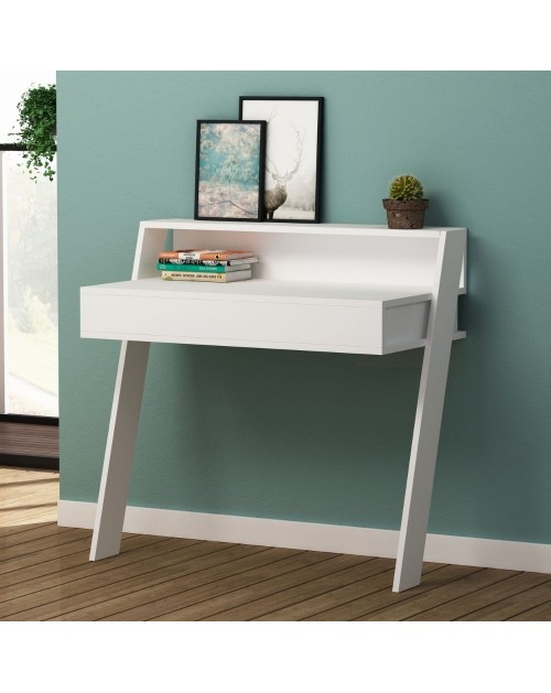 Scrivania con cassetto rovere bianco 100 cm. Nepo