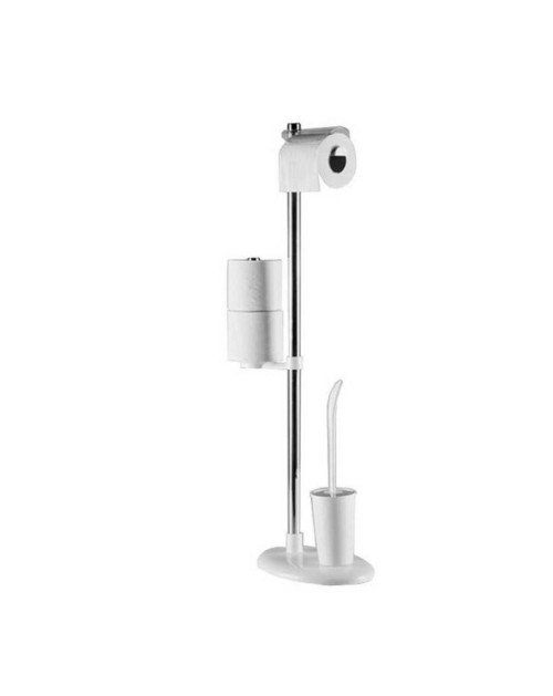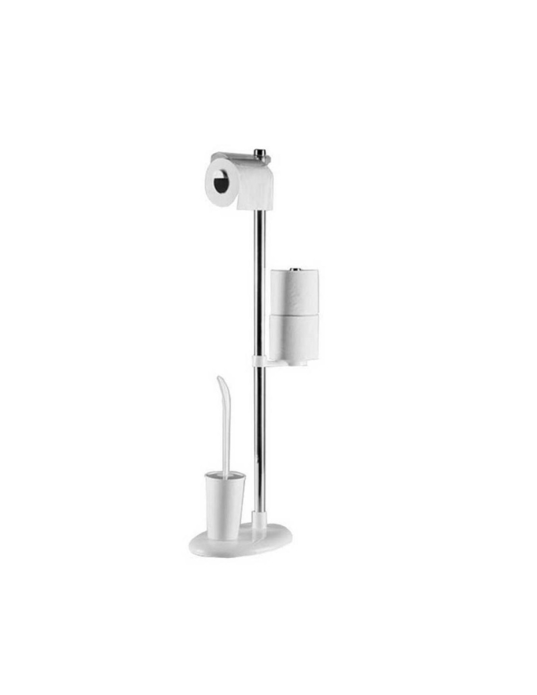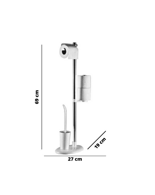 La piantana è composta da: porta scopino in plastica, porta rotolo carta igienica aperto per la rimozione immediata degli strappi e un porta rotolo di riserva dove riporre due rotoli aggiuntivi.