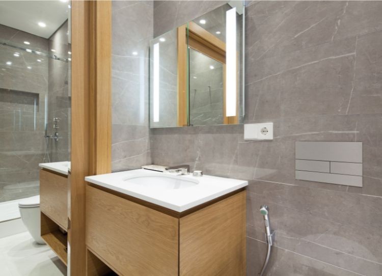 Un altro aspetto molto importante che prescinde dall’intensità della luce è la direzione in cui le luci devono puntare. In tal proposito, vi consigliamo di indirizzare le luci verso lo specchio e sfruttare i suoi rifessi per amplificare al massimo l’illuminazione e rendere la stanza ancora più ampia e luminosa.