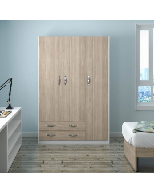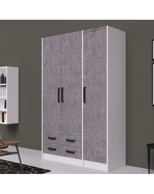 Armadio cemento tre ante e due cassetti 135x52x210h