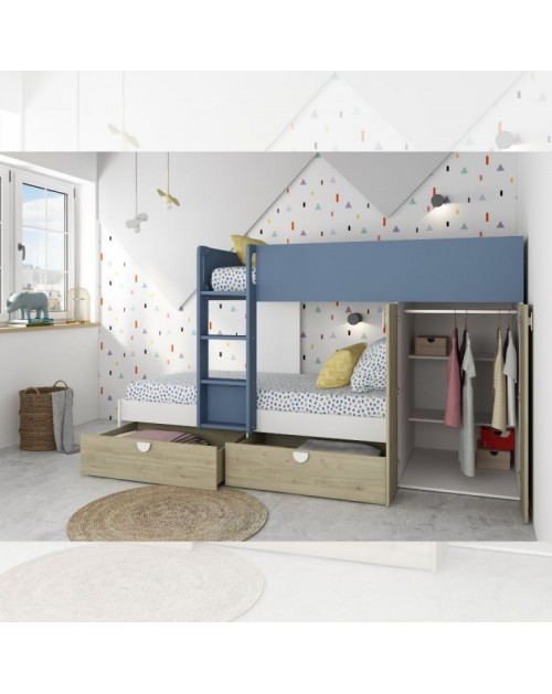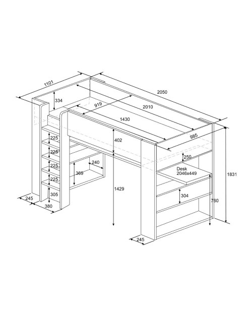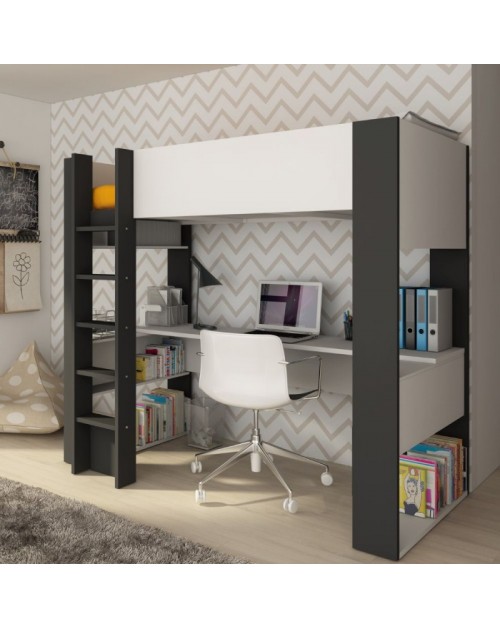 La generosa scrivania, posizionata sotto al letto, offre spazio per poter studiare o giocare al PC agevolmente, garantendo un’esperienza indisturbata. La base ha una tavola solida al posto della rete, quindi basterà posizionare un materasso per completare il letto.