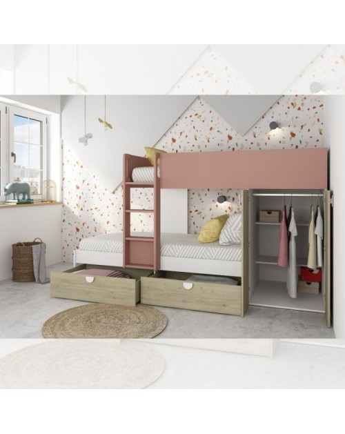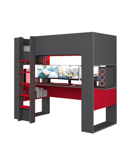 Letto a castello antracite rosso con scrivania 5050