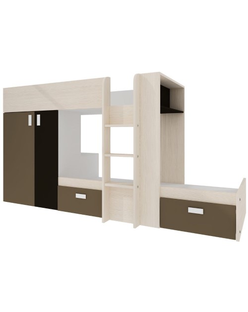 Letto a castello bianco vintage, beige e marrone con armadio e cassetti 1371