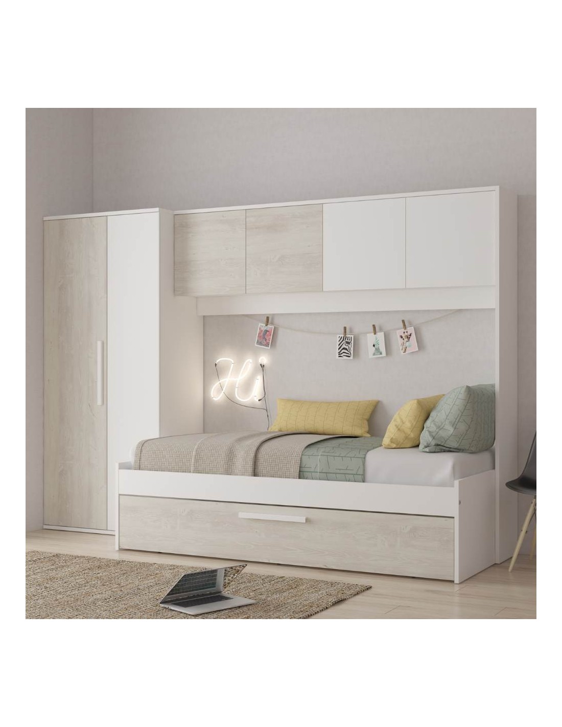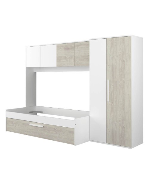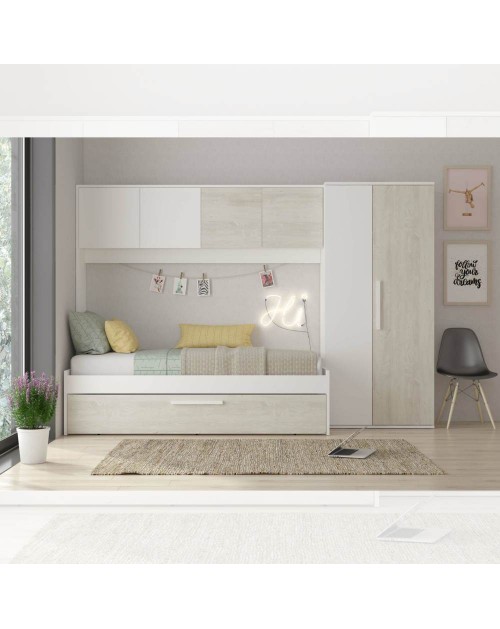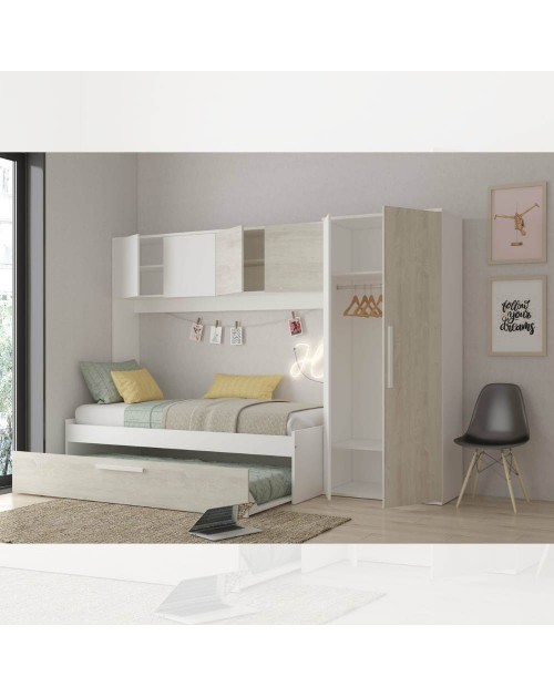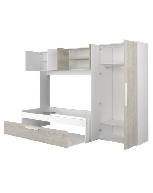 La cameretta con armadio a ponte 6006 si caratterizza per la sua funzionalità e il suo design moderno. Offre tanto spazio di archiviazione per avere tutto in ordine in modo intelligente.