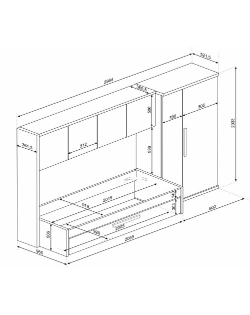 Misure:L 298,4 x P 96,5 x H 203,3 cm.