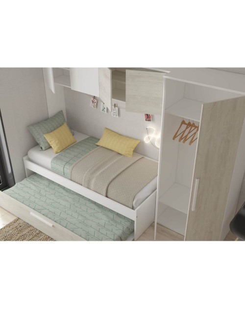 Cameretta a ponte con letto estraibile bianco e bianco consumato 6006