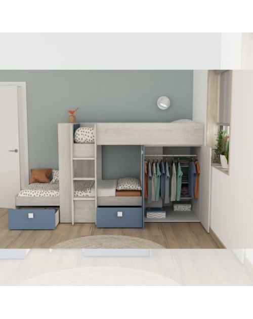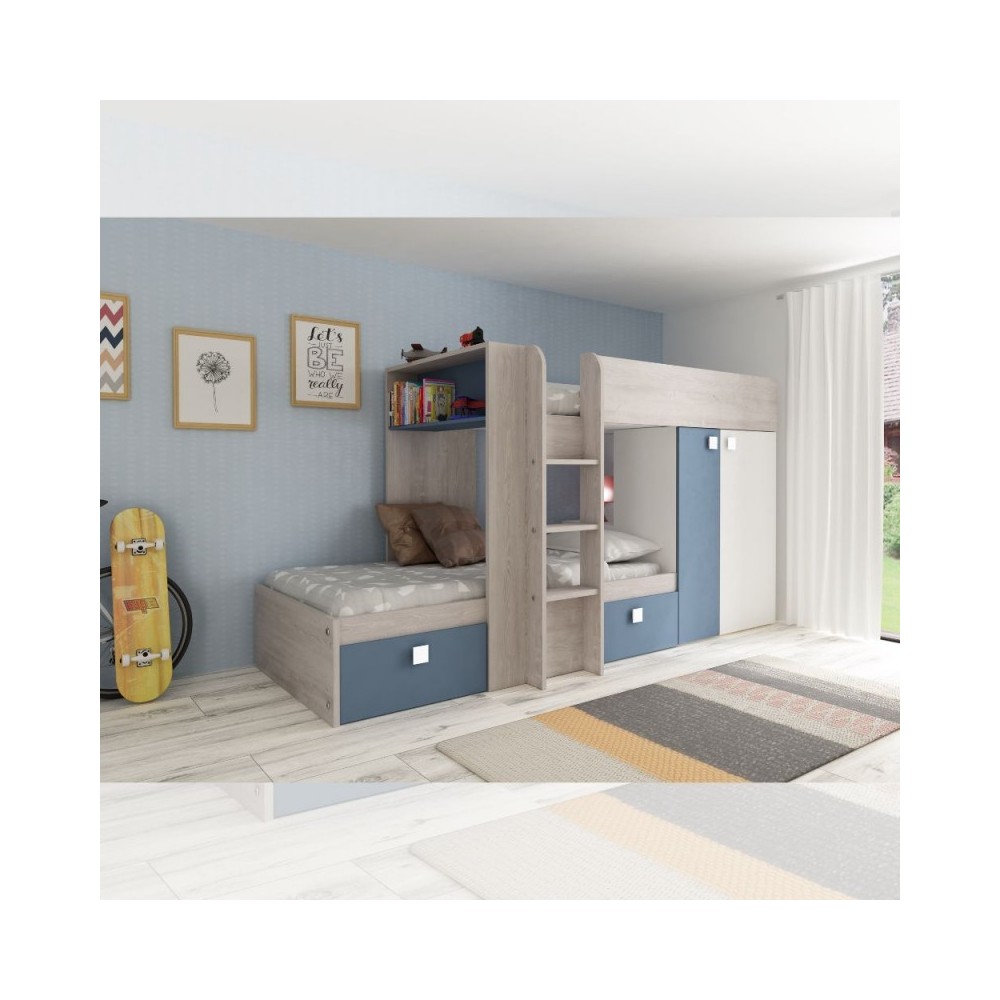 Letto a castello bianco vintage e blu con armadio e cassetti 1260