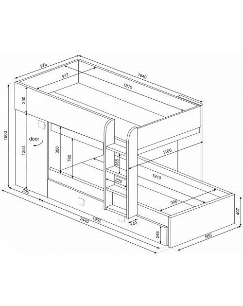 La scala e l'armadio possono essere posizionati a sinistra o a destra.