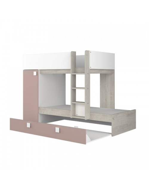 Letto a castello bianco consumato e rosa antico con letto estraibile