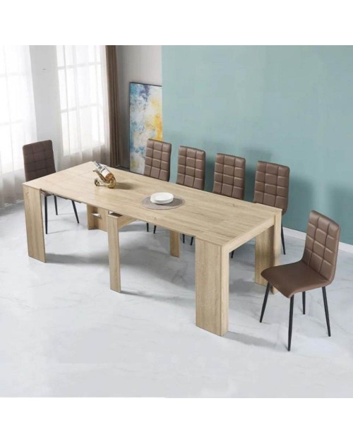 Grazie alle sue 5 allunghe da 49.7 cm, potrai decidere le dimensioni del tuo tavolo. Le allunghe trovano posto all’interno del prodotto.