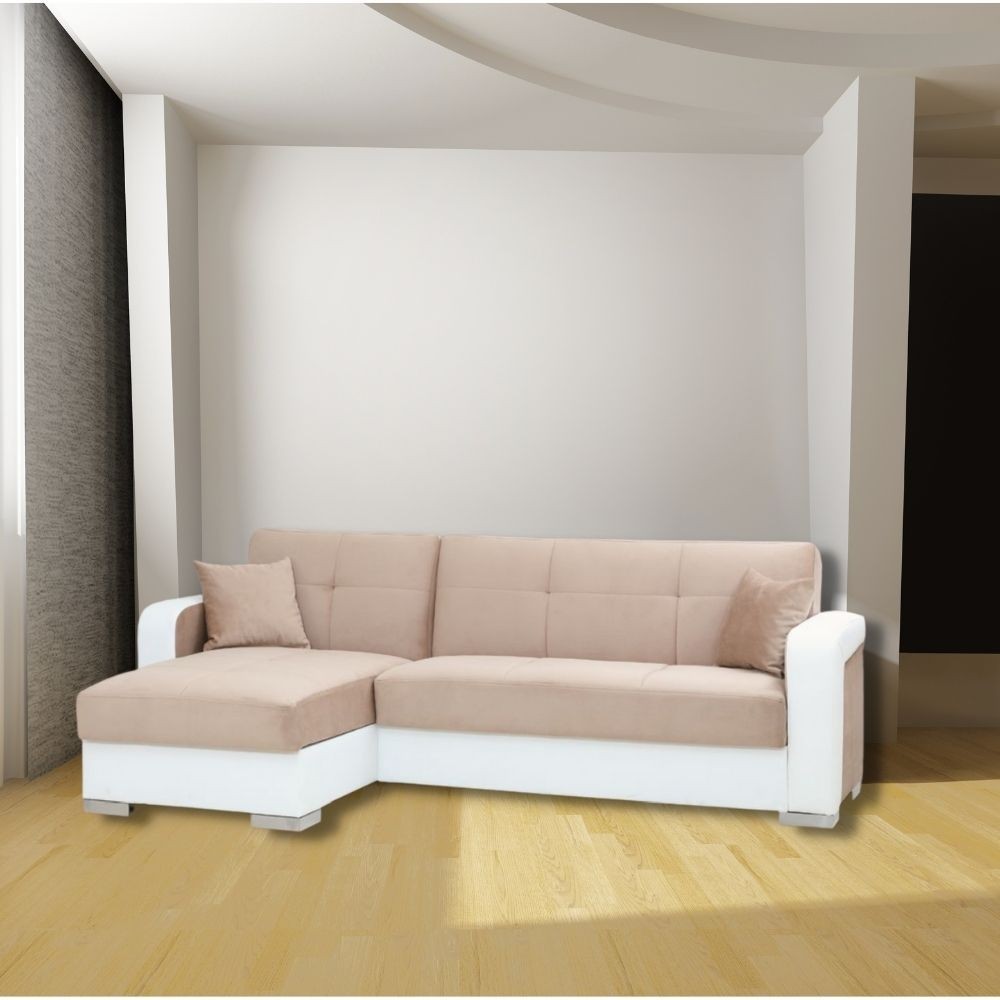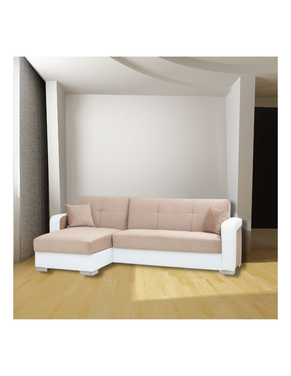 Divano letto Lincoln con penisola e doppio contenitore colore crema