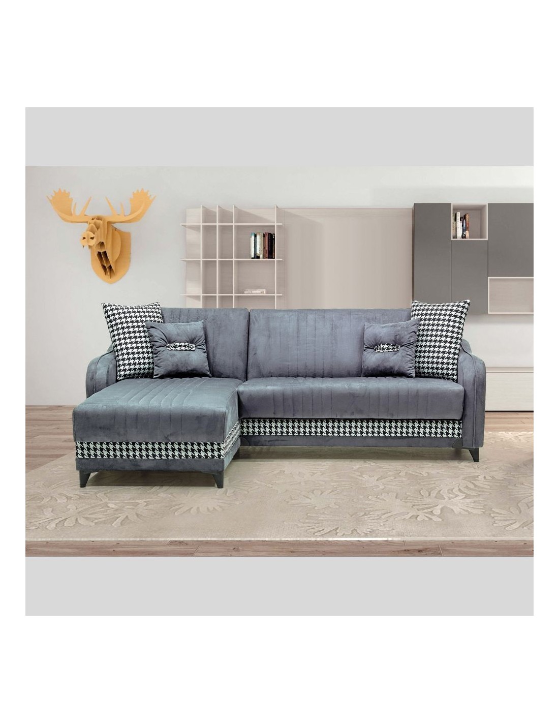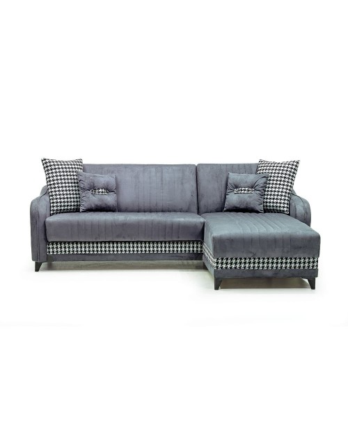 Divano con penisola contenitore reversibile grigio 246x138x92 H Laos