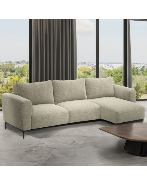 Il rivestimento in tessuto Orinoco in poliestere, morbido al tatto e allo stesso tempo resistente, dona al divano un look moderno ed originale.