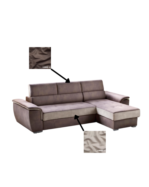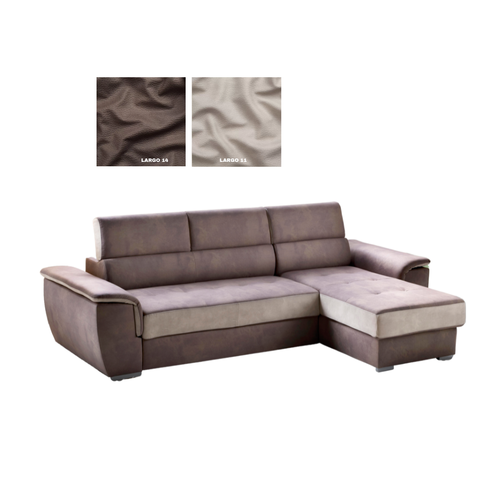 Il rivestimento è in tessuto doppio colore Largo 14 e Largo 11 realizzato al 100% in poliestere con effetto scamosciato.
