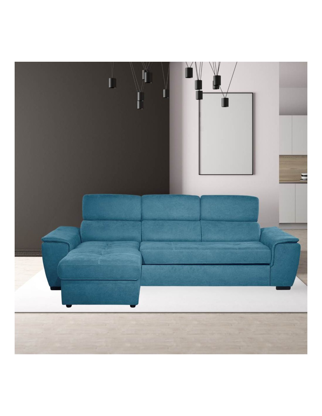 Il divano penisola reversibile Lometo verde acqua è il sofà che hai sempre desiderato per arredare il tuo living. Materiali di altissima qualità Made In Italy e design moderno sono le sue caratteristiche principali.