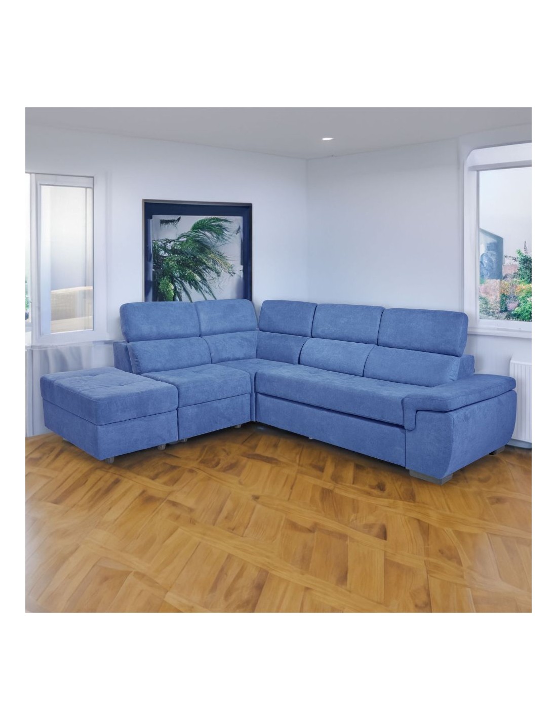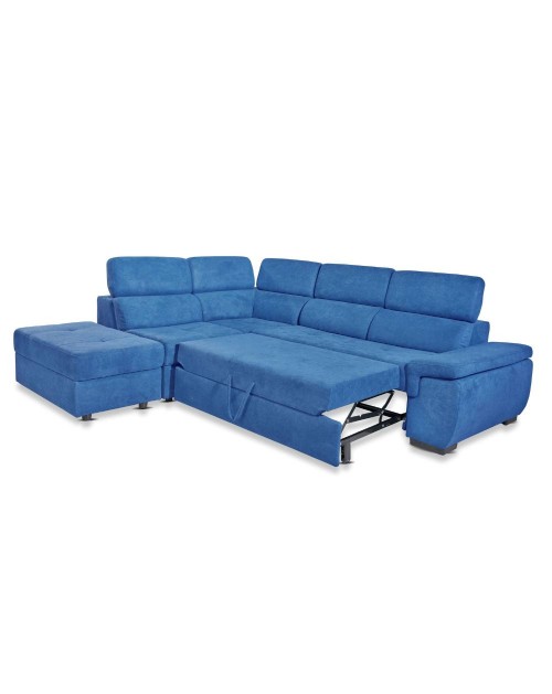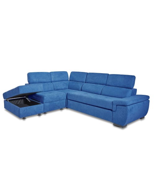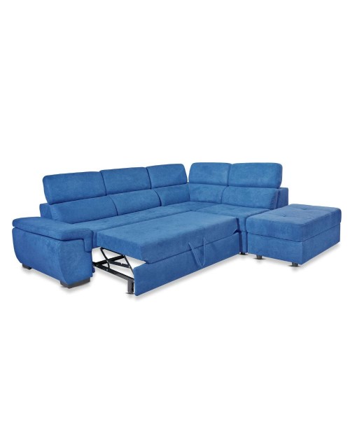 Divano letto estraibile tessuto ocean con penisola reversibile Lughen Roma26 280x230x85h
