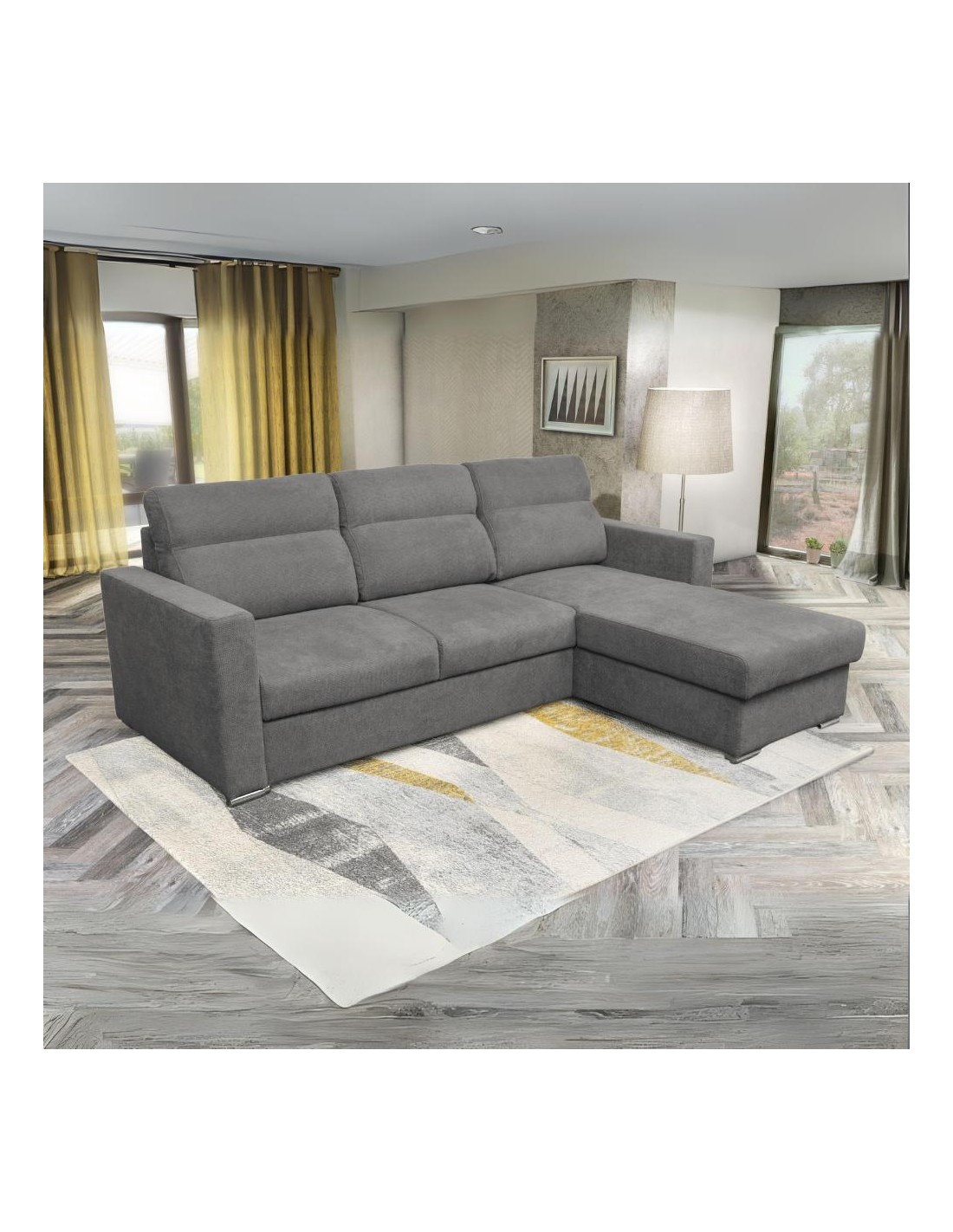 Il divano Kendall angolare con penisola reversibile grigio è un divano moderno e confortevole, ideale per arredare un soggiorno in stile contemporaneo.