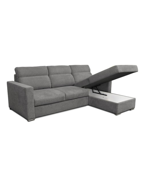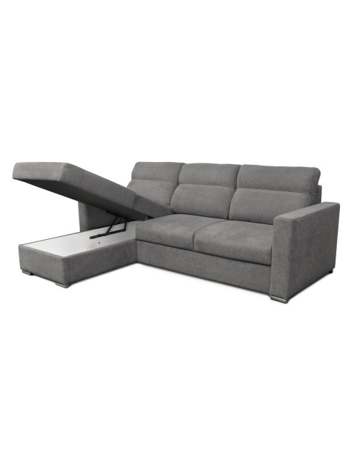 Divano Kendall angolare con penisola reversibile letto estraibile grigio