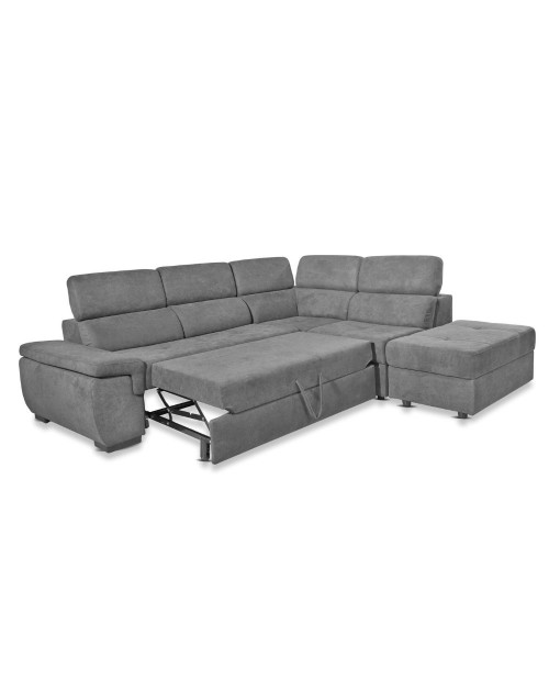 Divano letto estraibile tessuto elephant con penisola reversibile Lughen Luna24 280x230x85h