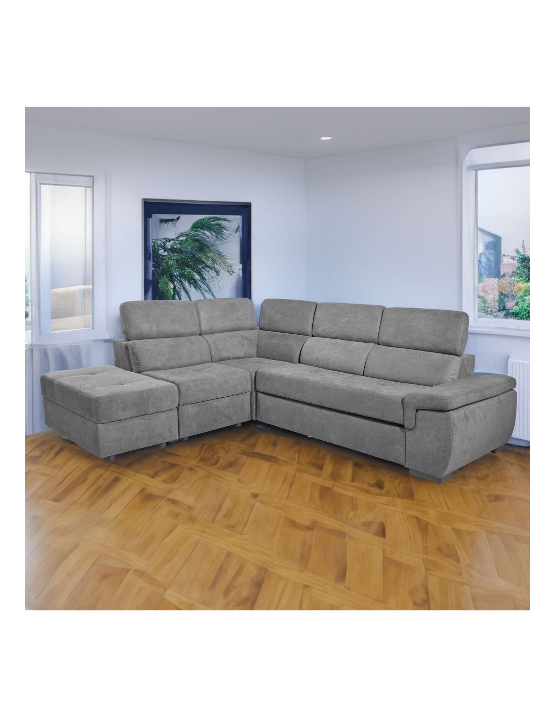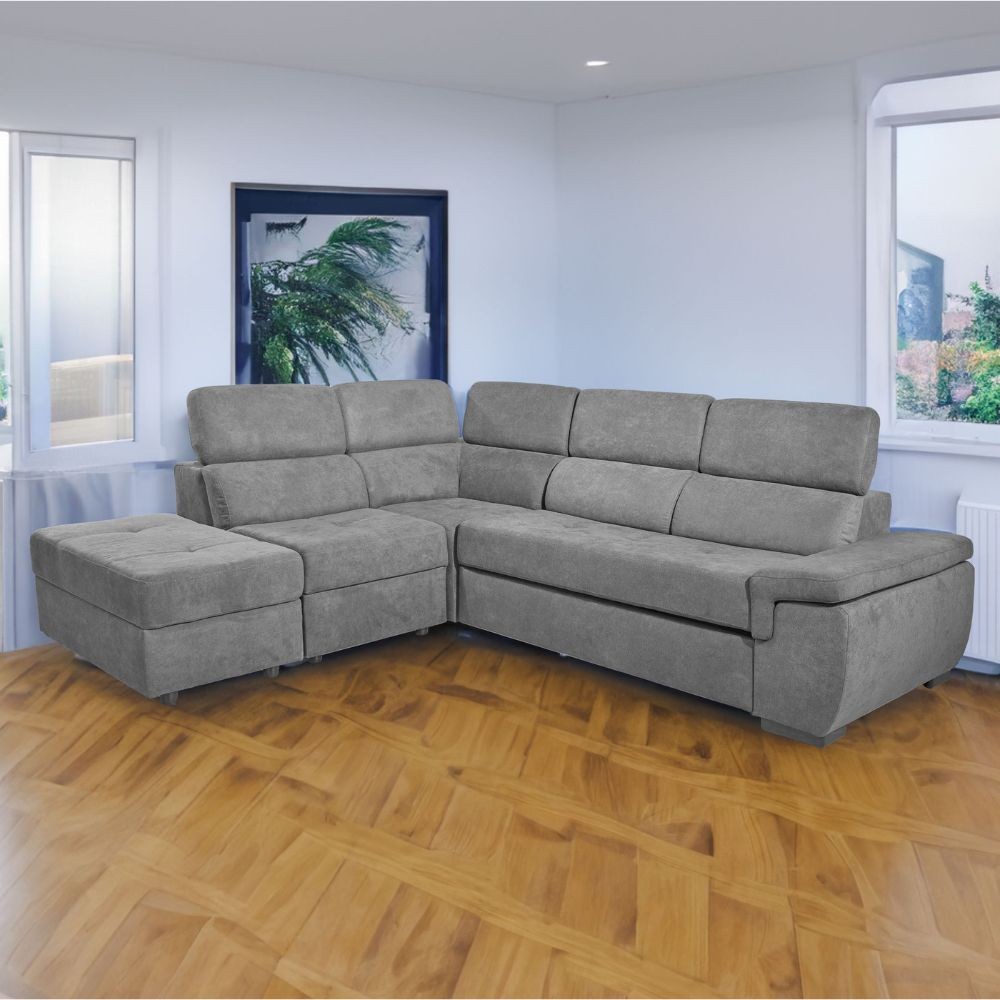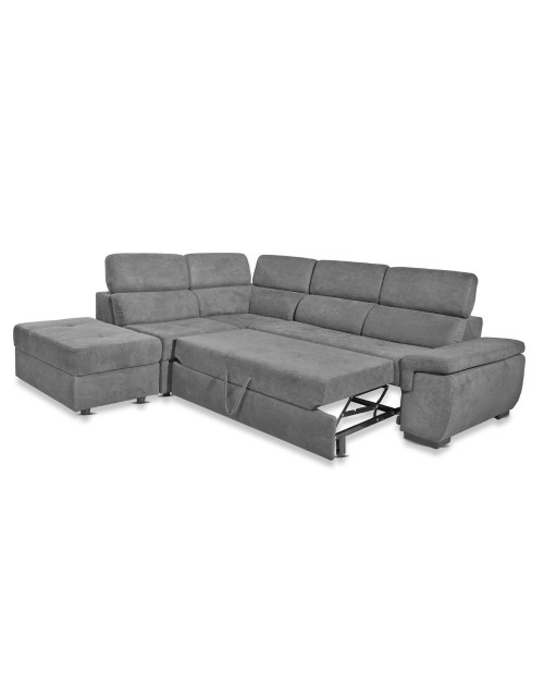 Il divano letto Lughen in tessuto elephant, è dotato di 5 elementi reversibili. Ideale per arredare un soggiorno o una zona relax. I poggiatesta sono reclinabili in modo da trovare la posizione più confortevole.