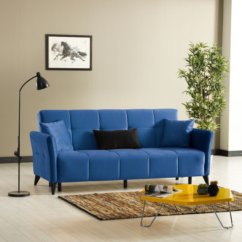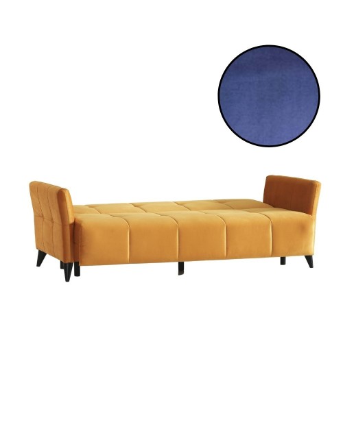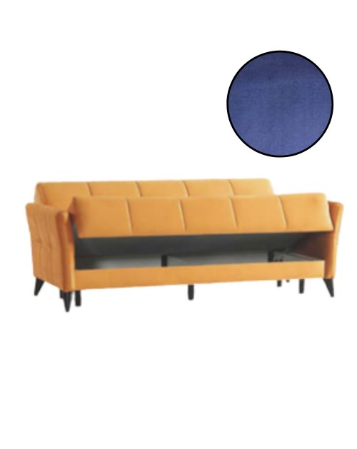 Divano 3 posti in tessuto blu con contenitore e letto Levy