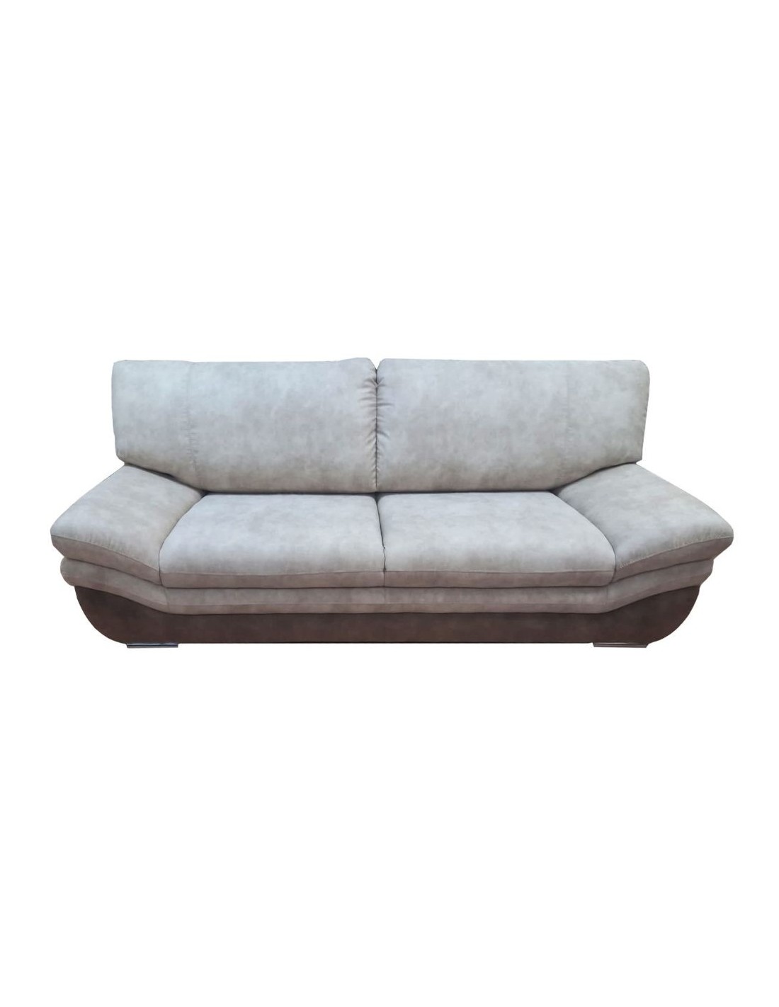 Comodo e raffinato divano rivestito in simil pelle di qualità effetto scamosciato. Puoi posizionarlo al centro del tuo living in quanto presenta il retro finito, oppure vicino alla parete. I braccioli sono morbidi e confortevoli grazie alla generosa imbottitura così come la seduta e lo schienale.