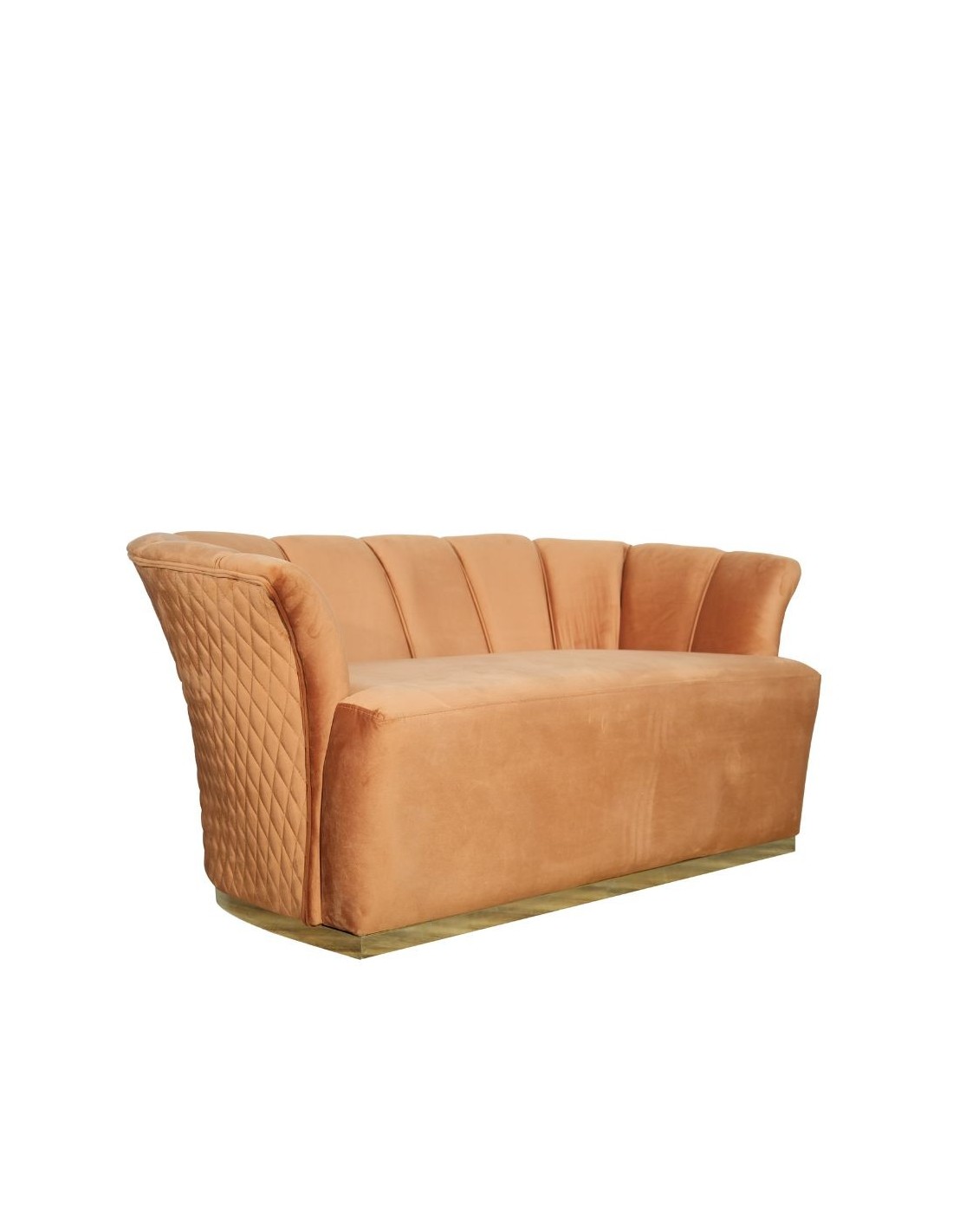 Comodo divano realizzato con materiali di ottima qualità. Caratterizzato da linee morbide e seduta avvolgente. Lo schienale presenta cuciture a forma di rombo mentre la base è colore oro. Puoi facilmente posizionarlo nella zona living per creare il tuo angolo di relax oppure nel tuo studio. Questo divano è un valido complemento d'arredo per rendere curati e raffinati i tuoi ambienti.