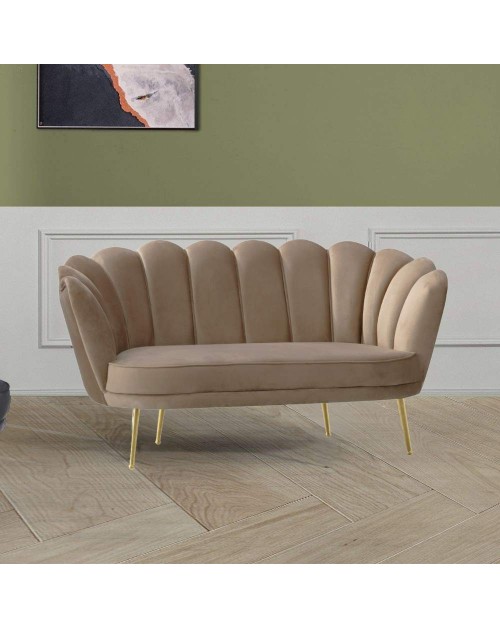 Divano due posti in velluto rosso a conchiglia Orel