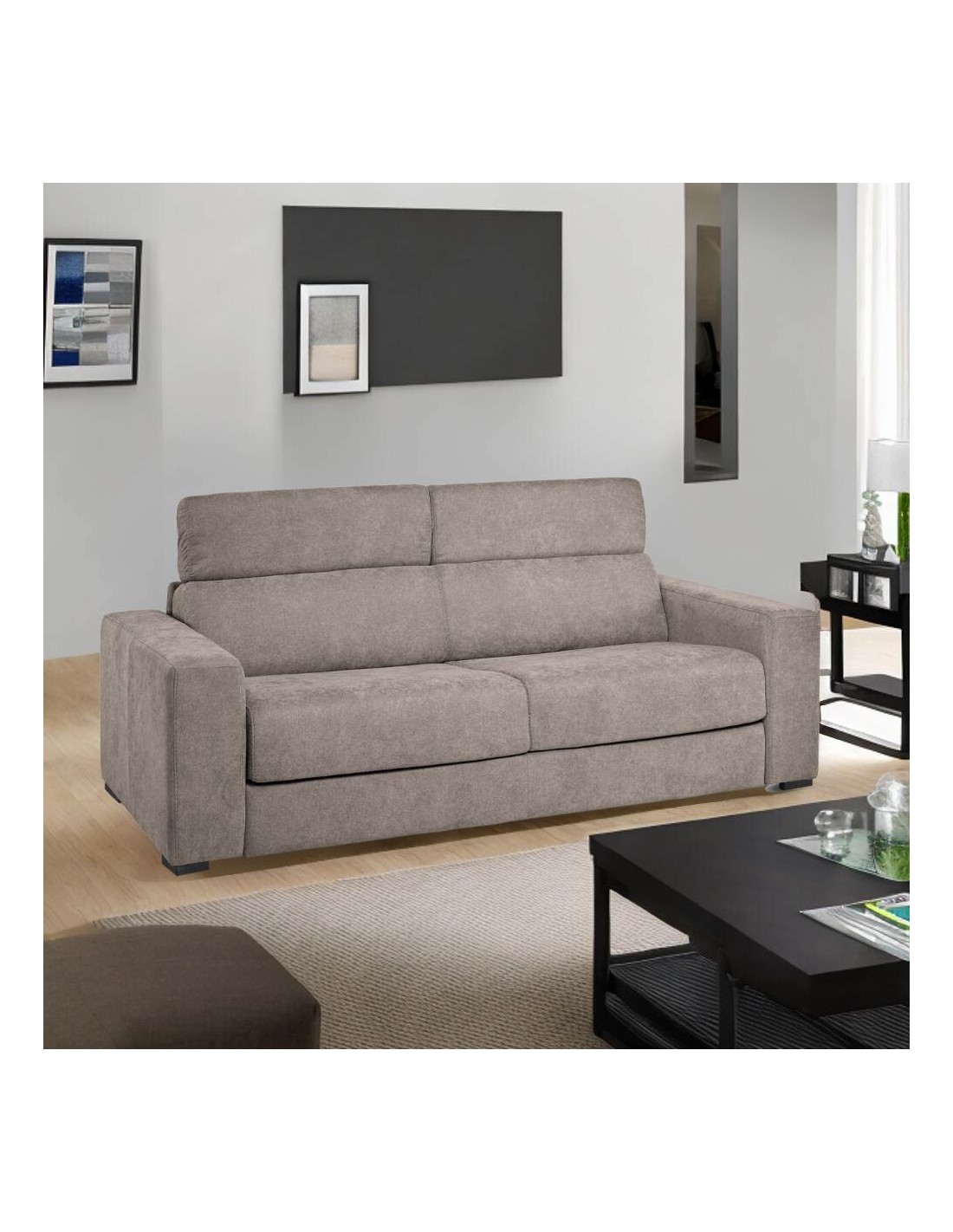 Divano letto 3 posti Crien tessuto Roma10 taupè