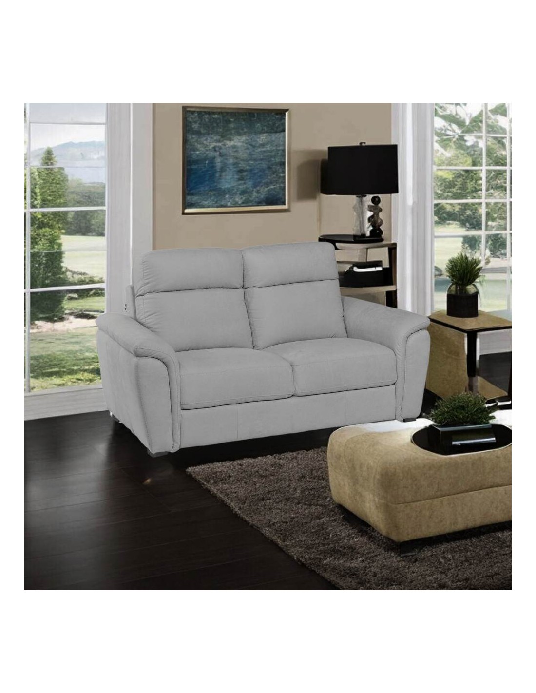 Divano 2 posti Gonzaga tessuto Luna20 grigio poggiatesta regolabili